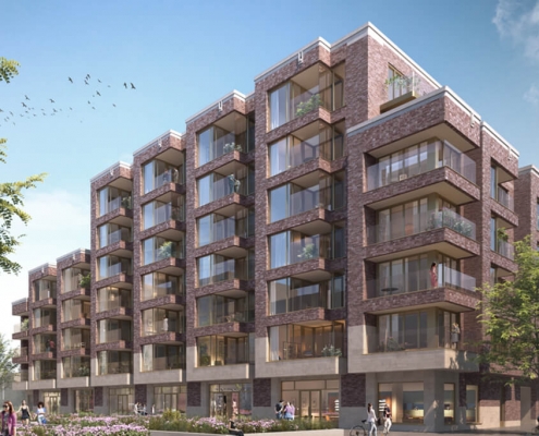 Beschrijving project: Dit appartementencomplex is gebaseerd op de bouwstijl Berlage. Zo zijn de details niet alleen zichtbaar, maar worden deze ook geaccentueerd. Om deze bijzondere details voor elkaar te krijgen, wordt er achter de schermen gebruik gemaakt van Liquid Rubber. Alle balkonaansluitingen worden waterdicht gemaakt met HBS200 en alle stelkozijnen worden voorzien van een laag Liquid Rubber voor de luchtafdichting.